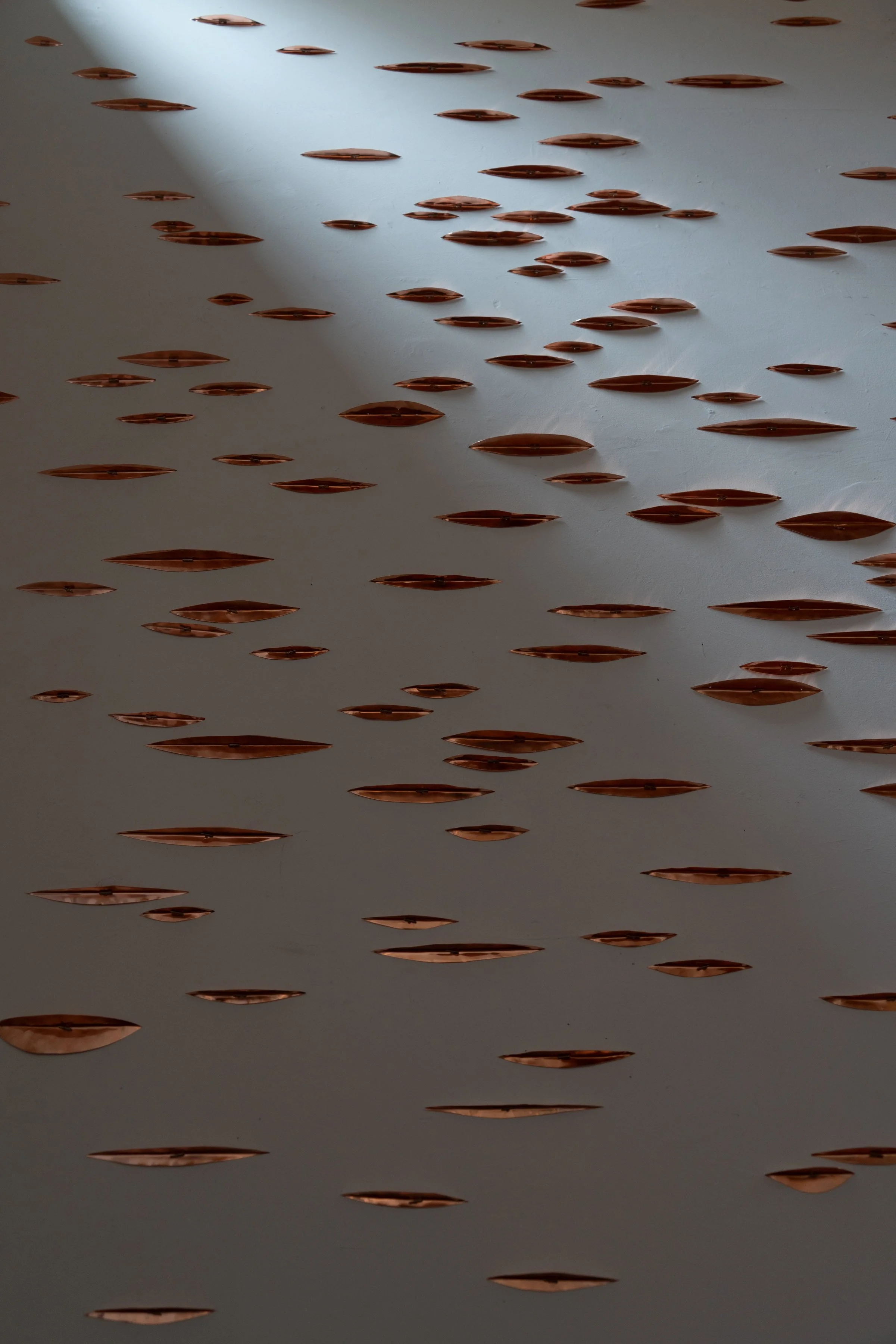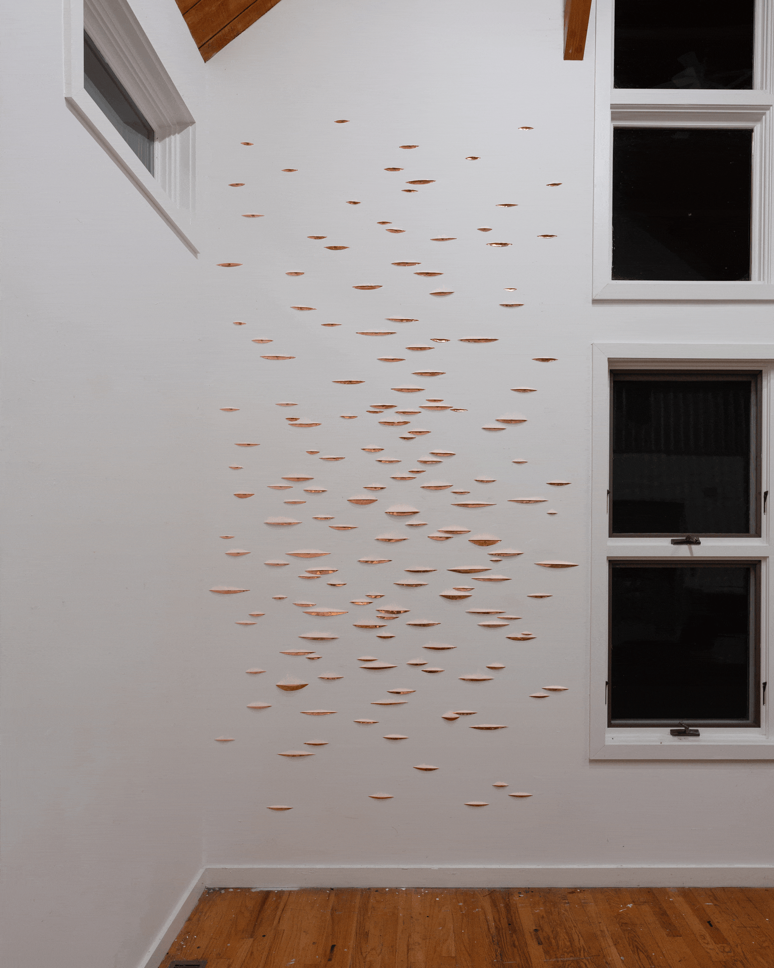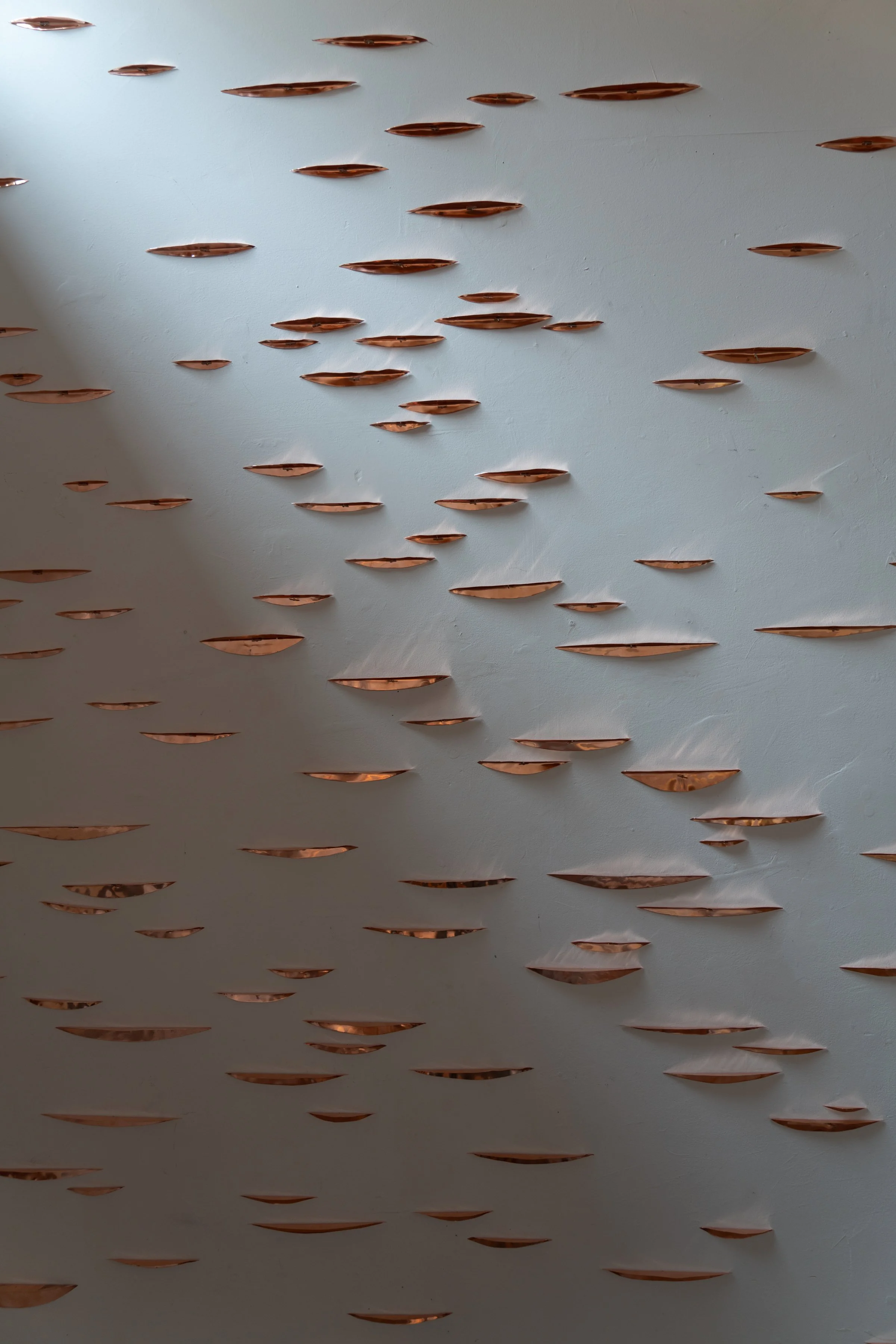 Copper installation in the studio during my residency at the Josef and Anni Albers Foundation. These animations show the copper reflecting the various light conditions at night within the space. View fullsize View fullsize View fullsize View fullsize