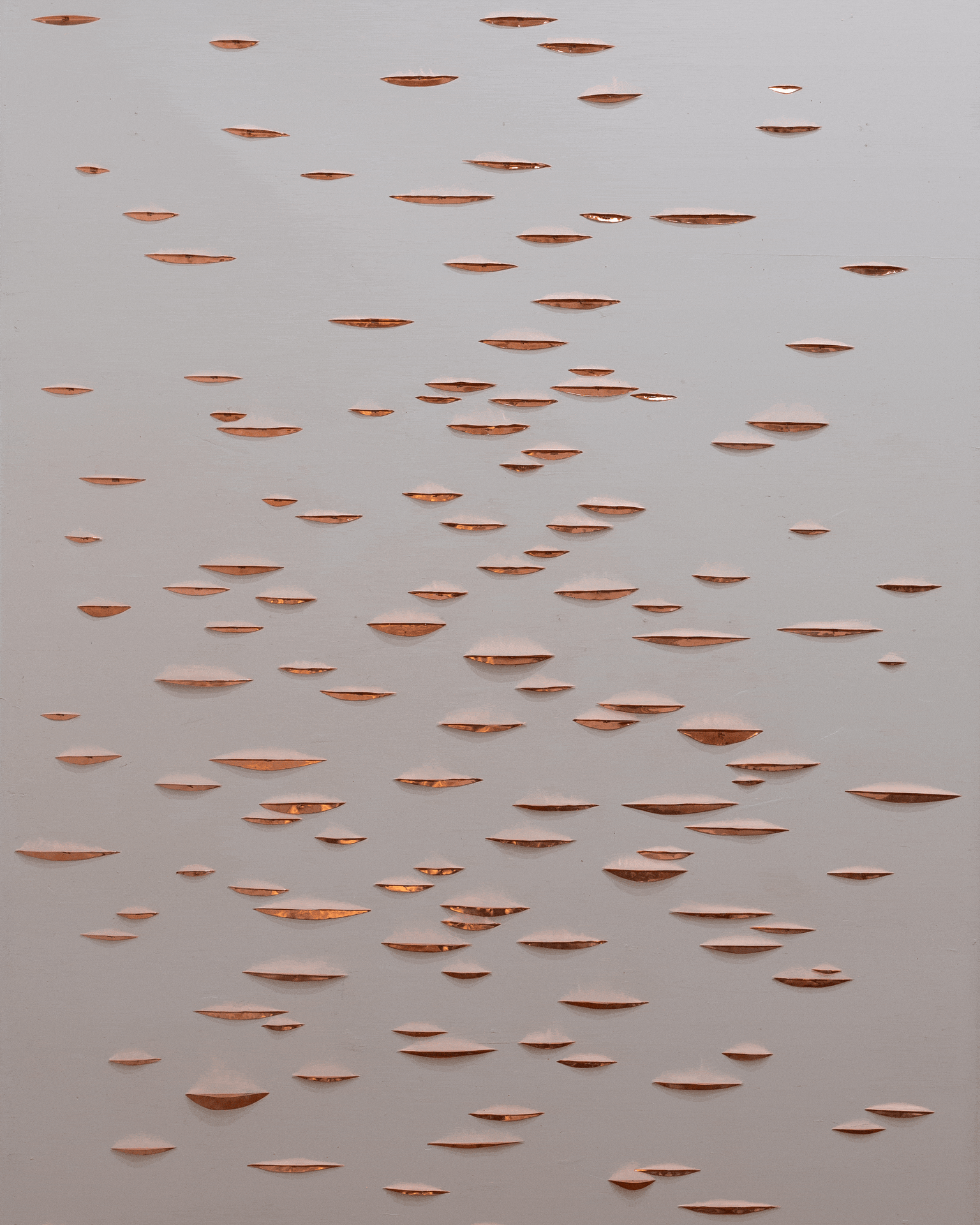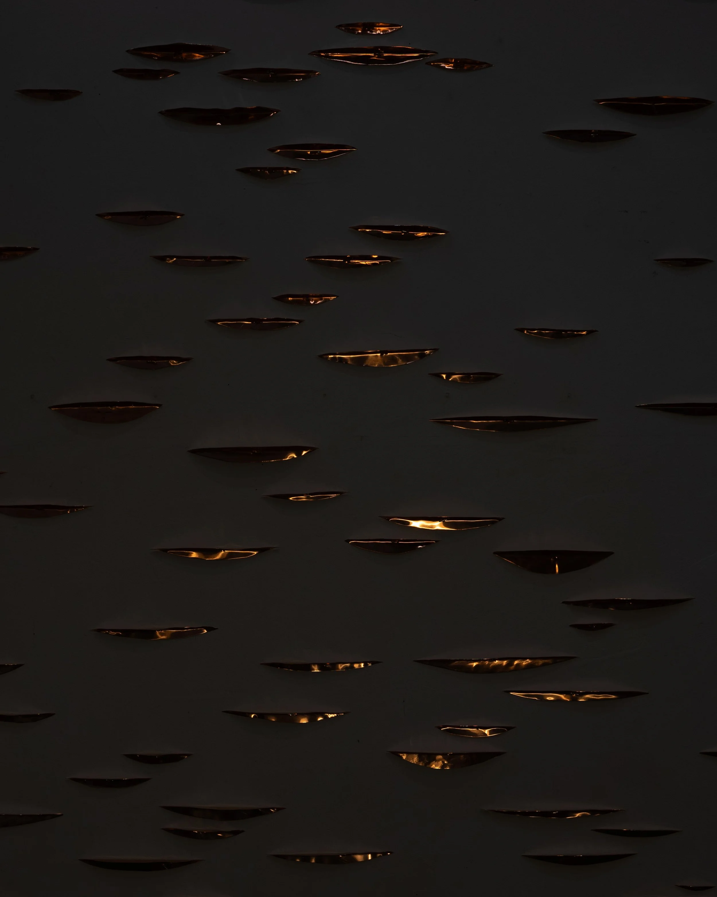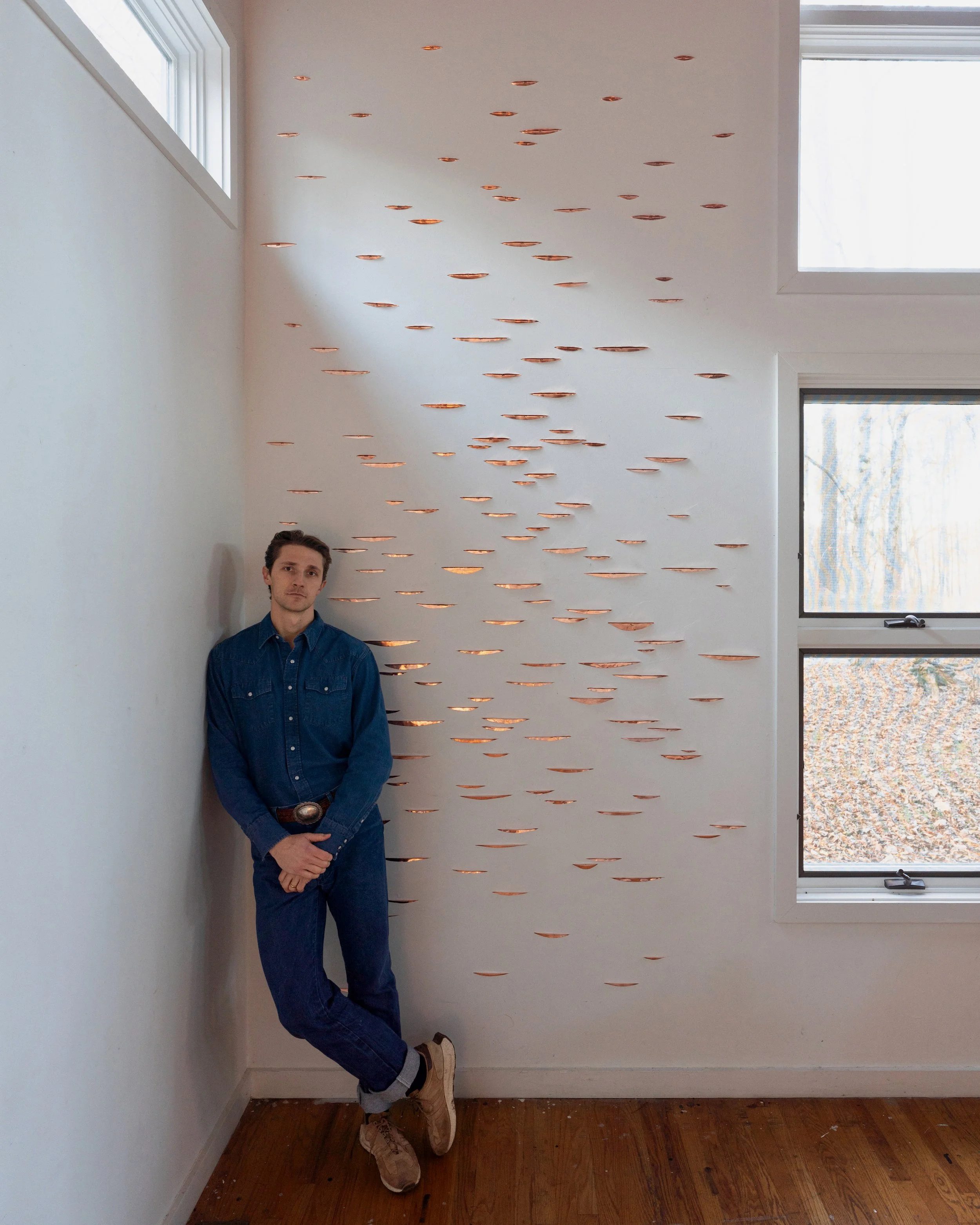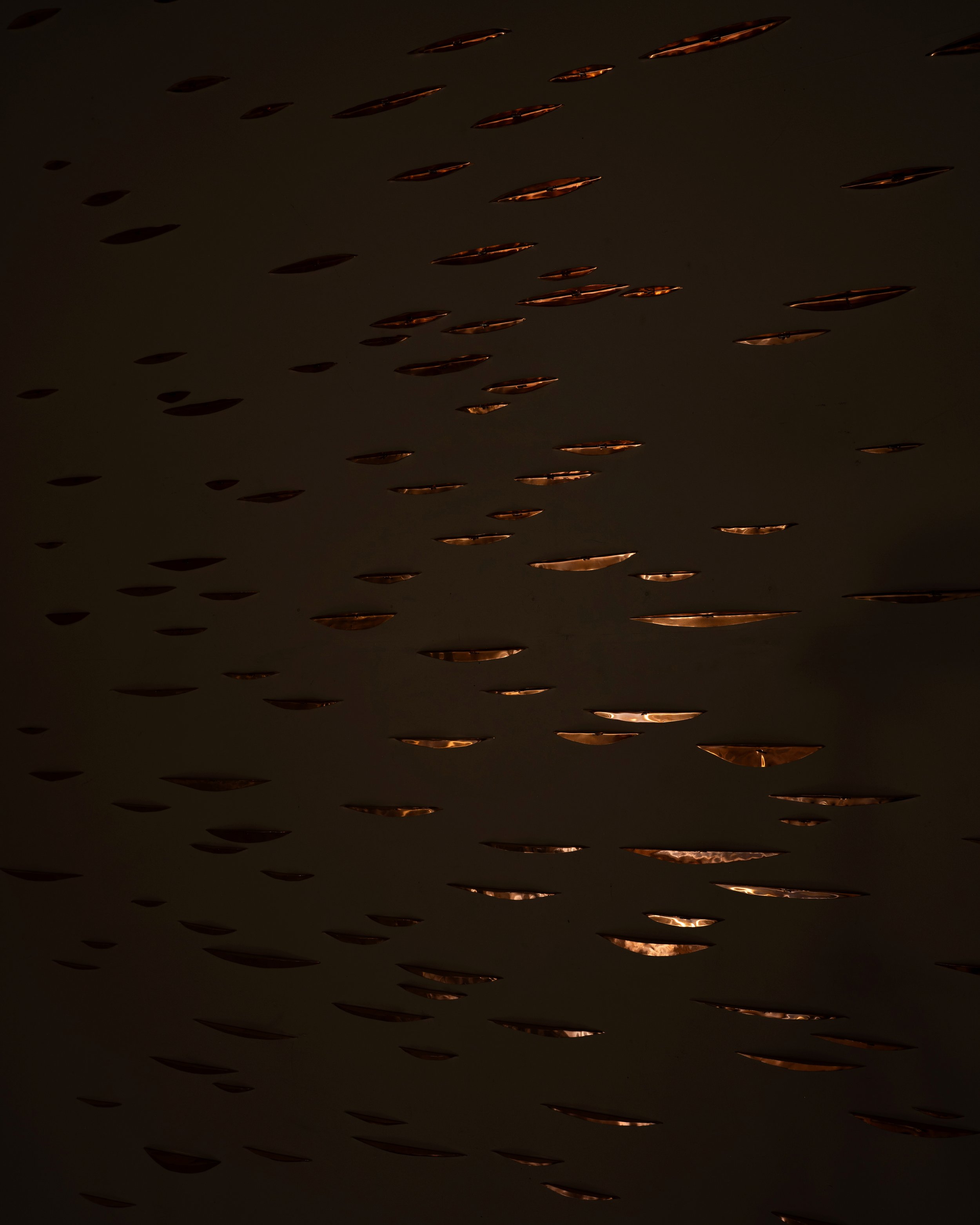 Copper installation in the studio during my residency at the Josef and Anni Albers Foundation. These animations show the copper reflecting the various light conditions at night within the space. View fullsize View fullsize View fullsize View fullsize